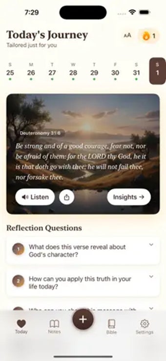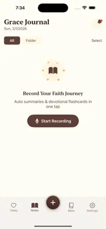 O aplicativo possui uma ferramenta de gravação embutida que você pode usar para gravar sermões, reflexões pessoais ou sessões de estudo bíblico. Ele então transcreve a gravação e usa IA para gerar um resumo com os pontos principais. Isso ajuda você a se concentrar em ouvir e estudar enquanto o aplicativo cuida da anotação. Perguntas de reflexão também são fornecidas, guiando seus pensamentos e despertando uma contemplação mais profunda.